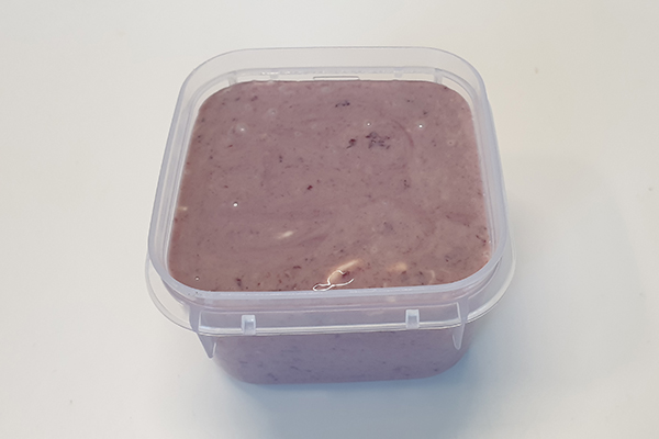 You can use any type of pureed or mashed fruit. Here I’ve used my home grown berries that I bottle each autumn and take on the road with me. I’ve also used pureed mango which you can buy in Asian grocers, and added a bit of cardamom. Well mashed bananas with some cinnamon work well too. Avoid large pieces of fruit though as they tend to go icy.