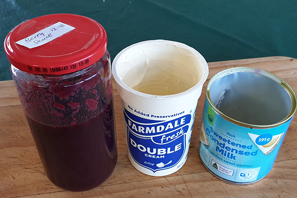 Whilst technically not ice cream because it isn’t churned, this is a great way to produce a quick, tasty dessert whilst out bush. And it only needs three ingredients!
